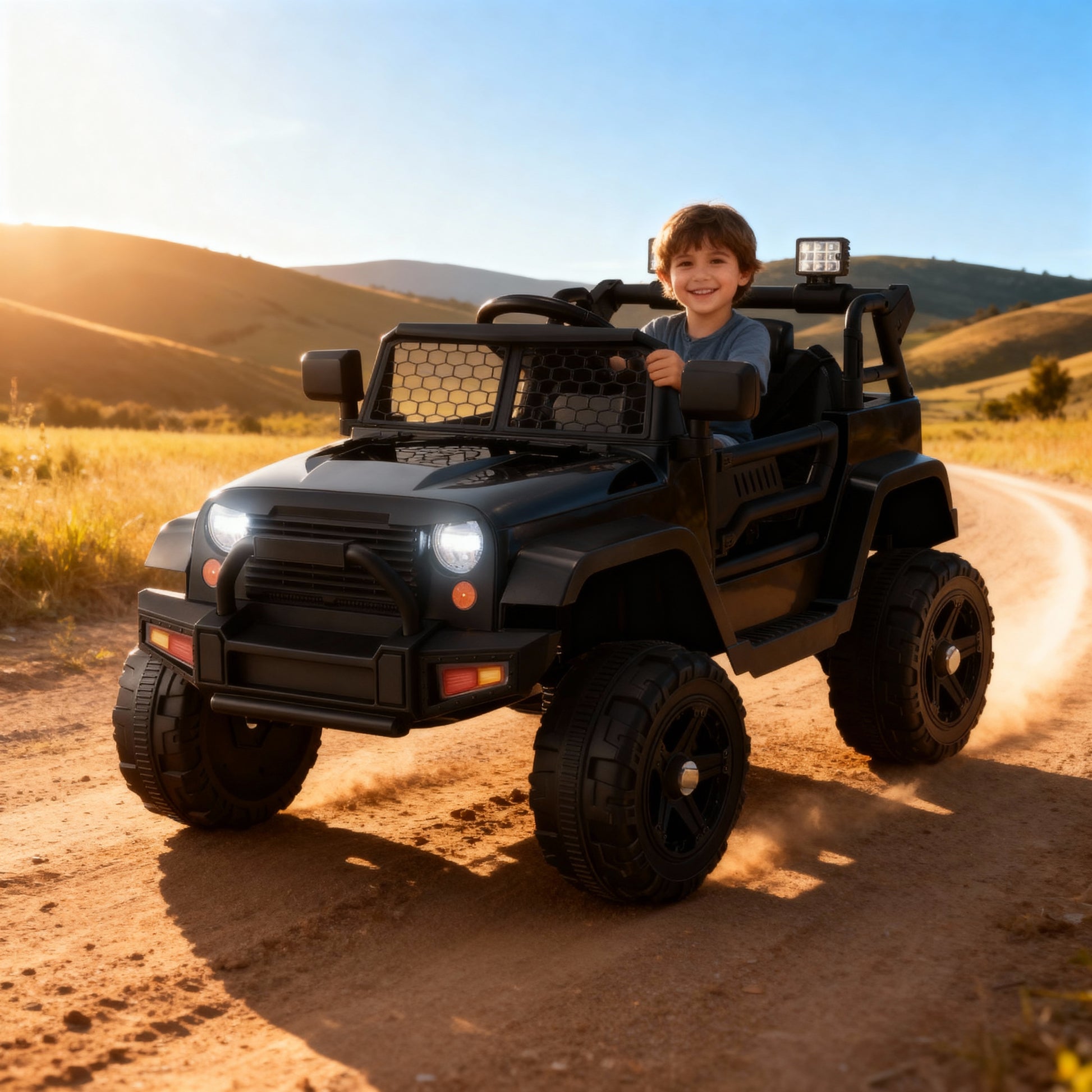 π Safe & Smooth Ride: Rear suspension, soft start, and 2-point seatbelt ensure comfort on any terrain.
